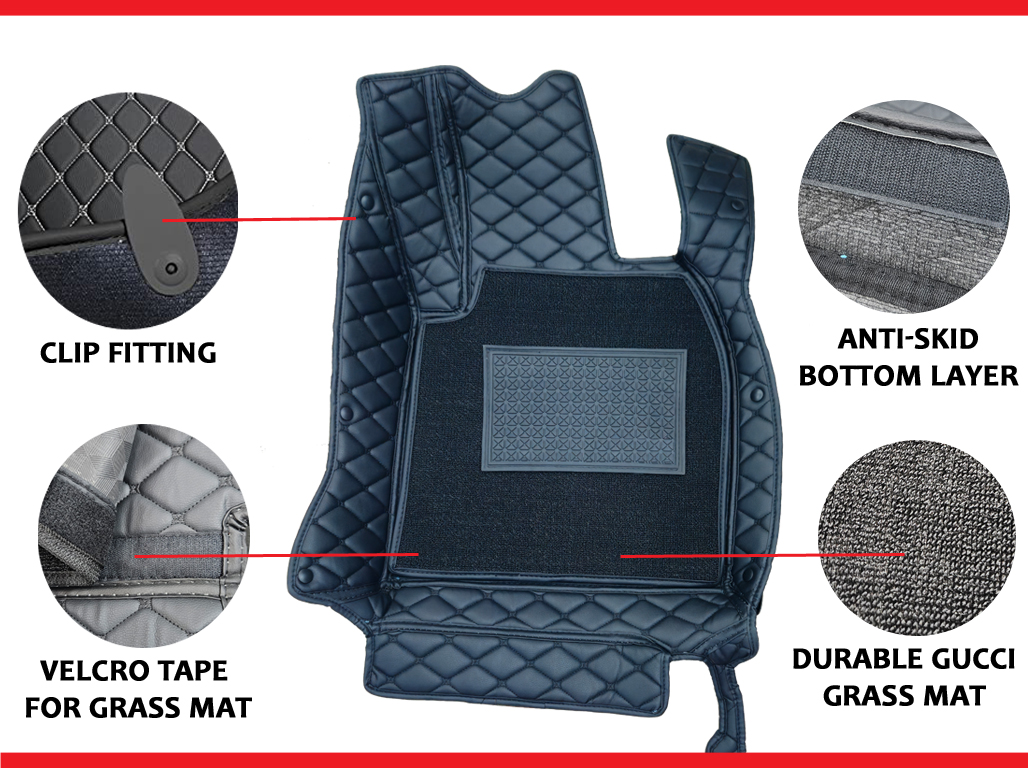 • All 7D Car Floor Mats comes with detachable Gucci Grass Mats, which makes cleaning and maintenance of car an easy task to do.