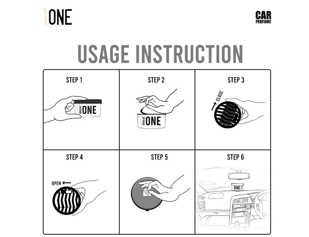 - ??With DrivFRESH – Specially formulated Involve ONE series Car Perfume is formulated to perform and deliver freshness inside the car cabin. Just remove the inner seal and enjoy the freshness. Enjoy the long lasting freshness in car.